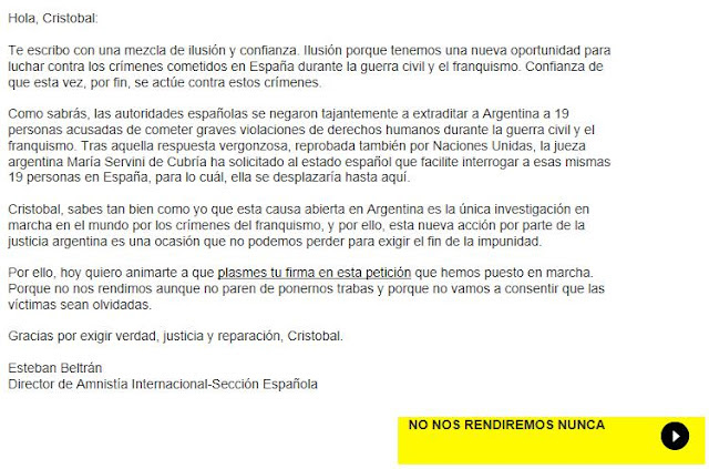 3º.-Amnistía Internacional ha sacado adelante esta campaña de apoyo a las víctimas del franquismo: